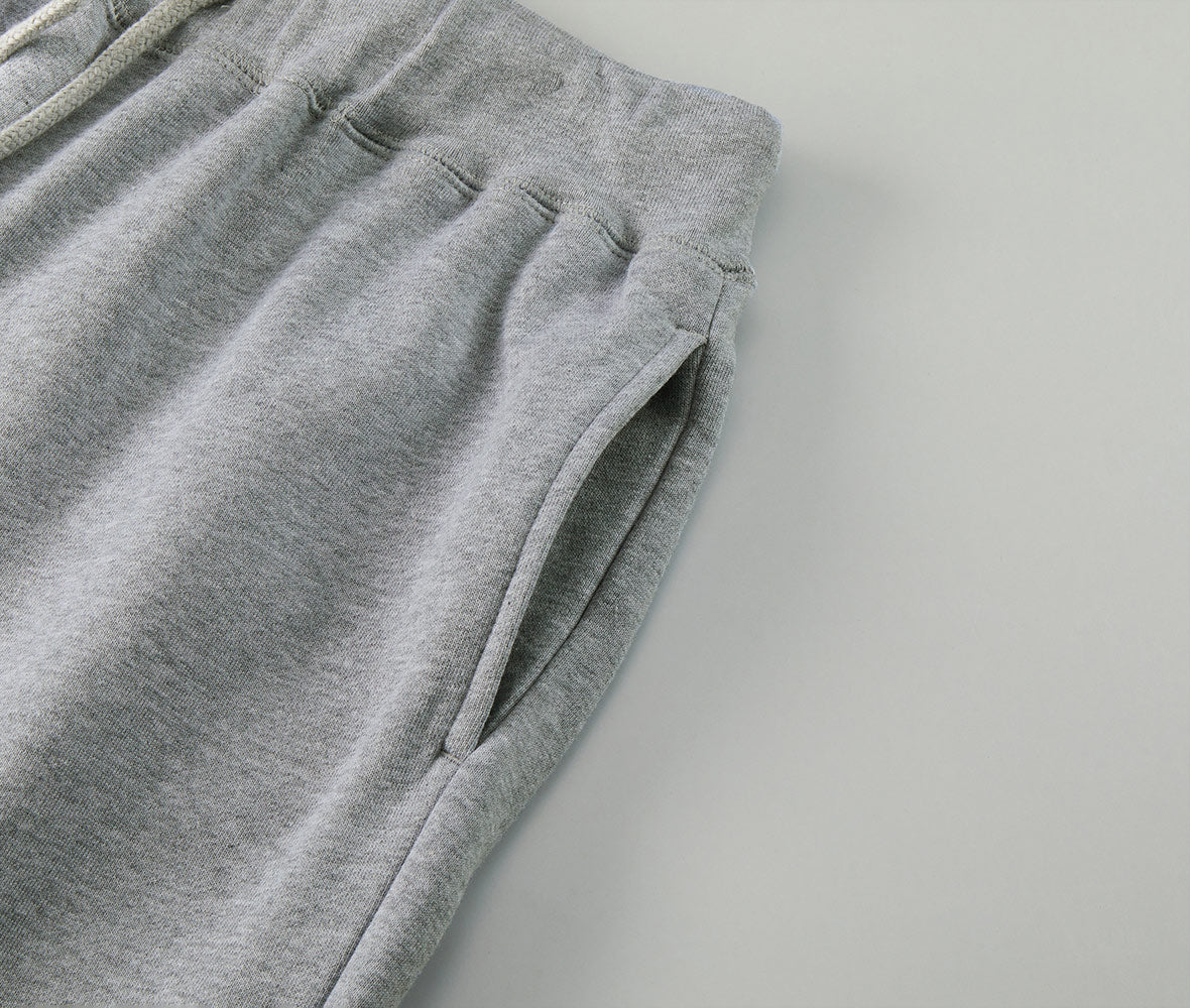 スウェットパンツ: 10 オンスの厚手の 100% プレミアム コットン スウェットパンツ。上質なコーマ糸で作られたテリー裏地で、滑らかな手触りと最小限の縮みを実現。